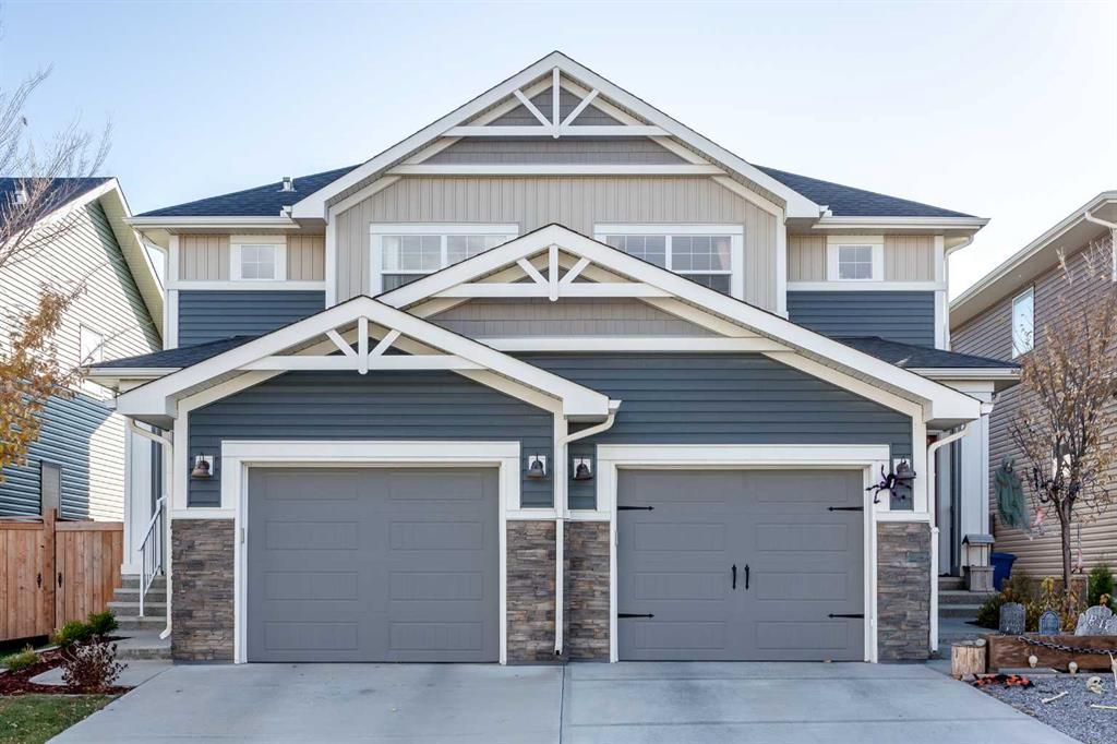 Step into this exquisite, move-in ready duplex nestled in the heart of Airdrie’s prestige Bayside community. Offering superb value with zero condo fees, this attached, two-story home showcases an undeniable pride of ownership across 1,370 sq ft of modern, bright living space. Upon entry, you’ll immediately appreciate the thoughtful design of the main floor, which boasts high ceilings, large windows, and an open-concept layout ideal for both everyday living and entertaining. The spacious living room invites relaxation, featuring a cozy electric fireplace framed by a chic shiplap floor-to-ceiling feature wall. This space opens directly into the stunning kitchen, a true chef's delight. It's equipped with modern finishes, ample white cabinetry, a convenient pantry, and centered around a magnificent quartz island illuminated by stylish pendant lighting. With clear sight lines, the kitchen seamlessly connects to your bright, contemporary dining area. A conveniently placed two-piece powder room completes the main level. The upper level continues the sophisticated aesthetic, providing a spacious primary retreat—a peaceful sanctuary complete with a walk-in closet and a spotless three-piece ensuite. This floor also hosts two additional great-sized bedrooms, a well-appointed four-piece bathroom, and the highly desirable designated upper-level laundry. Adding fantastic future value, the basement is pre-plumbed and ready for development, offering potential for a fourth bedroom, another full bathroom, or a spacious recreation room. Outside, the property features a single attached garage and a beautifully landscaped, fenced, sunny backyard with a deck and low-maintenance greenery. This home’s prime location is a key highlight, being just steps from the serene waterside pathways and offering easy access to schools, parks, and shopping. Don't miss the chance to experience this perfect blend of comfort and community—it's truly the ideal place to call home! Book your Showing today!